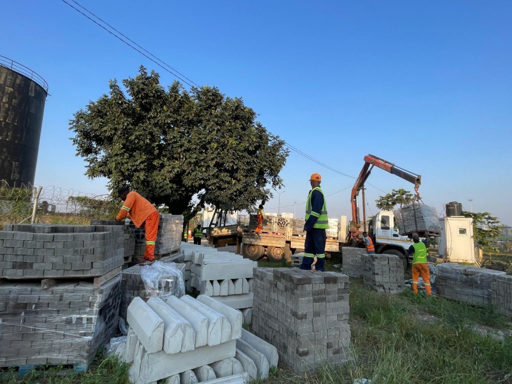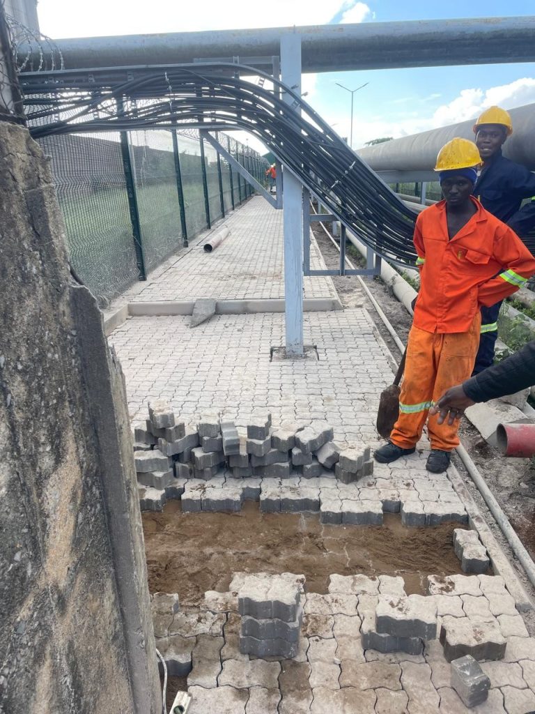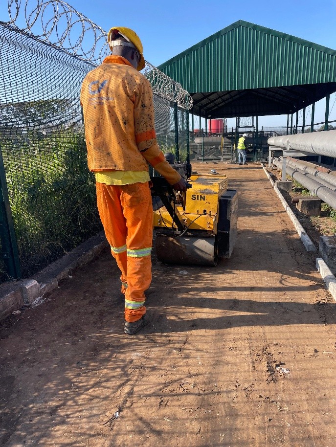 Preparação da Base: Escavação, nivelamento e compactação do solo para assentamento dos pavês.