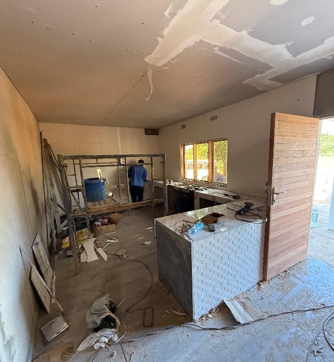 Aspecto final: Reconstrução solidária de casa T2 para três menores abandonados – Mugoi, Chidenguele. Projeto com impacto humano e dignidade habitacional.